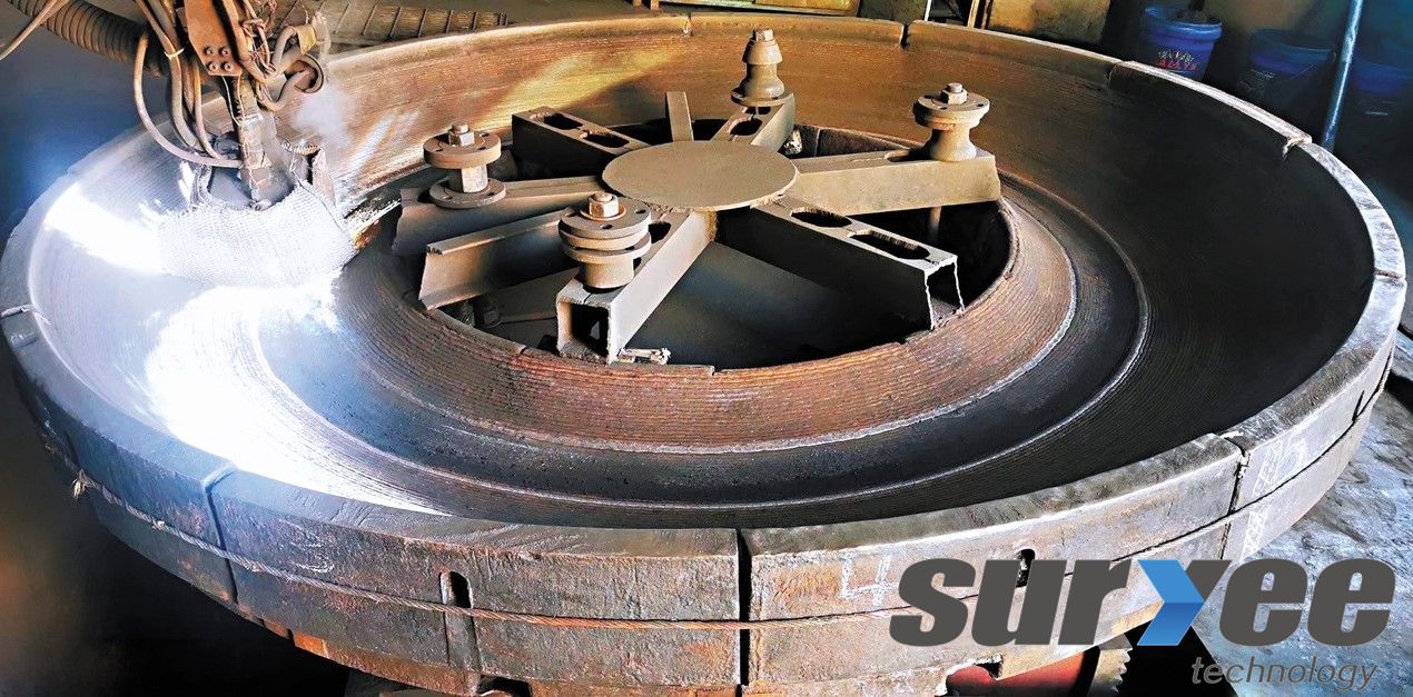 賽億科技SSR系列輥壓機(jī)表面堆焊專用材料包括過(guò)渡層、緩沖層、硬面層和耐磨花紋層。通過(guò)這幾種材料的合理搭配,形成輥面硬度梯…