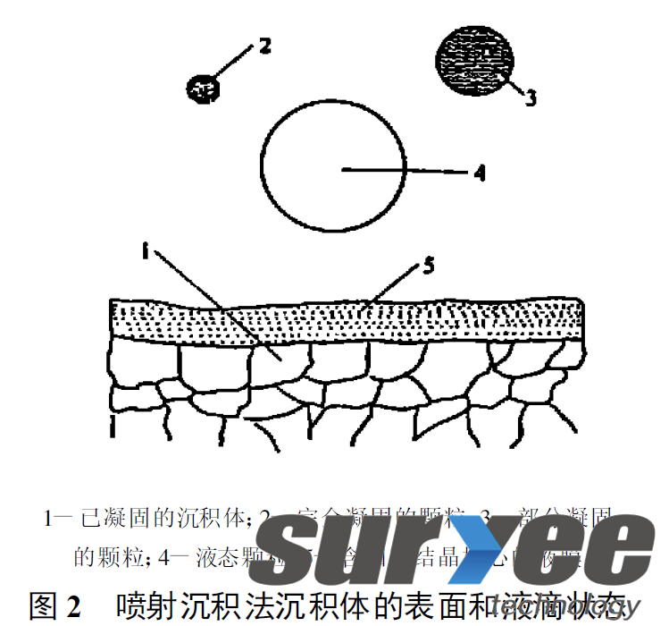 噴射沉積法通過控制合金液滴的尺寸、飛行速度和液滴接觸基板時的溫度與凝固狀態獲得理想的產品。以上目標參數可通過調整氣流速度、噴嘴結構、噴射距離等可控參數實現。
