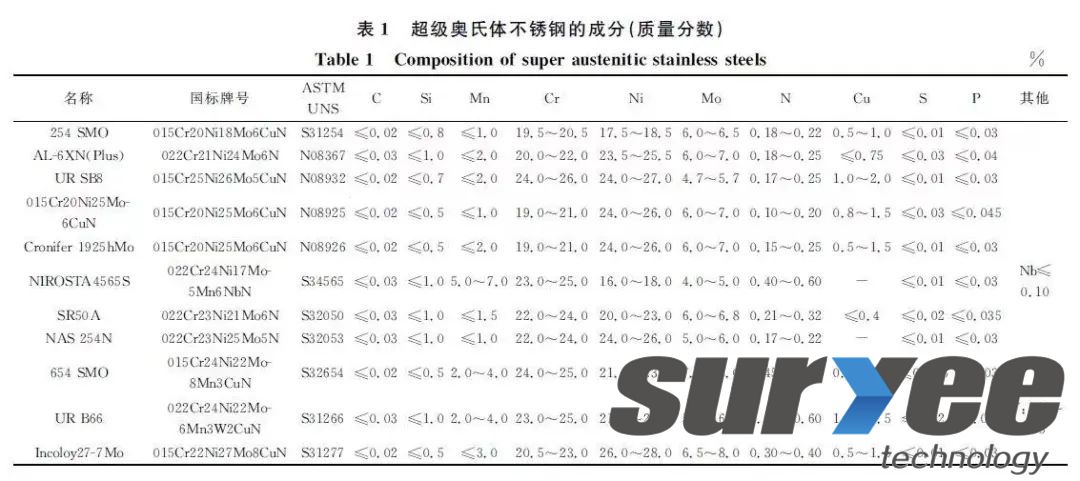 1、超級奧氏體不銹鋼的演變